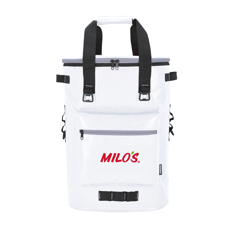 sku: MIL16002The premium Koozie Olympus Kooler Backpack, with a heat-sealed PEVA liner, is the perfect way to carry your refreshments for a day of fun. It has a 36-can capacity and is made of an easy-to-wipe-clean tarpaulin. 13.375" W x 18.5" H x 7.875" D