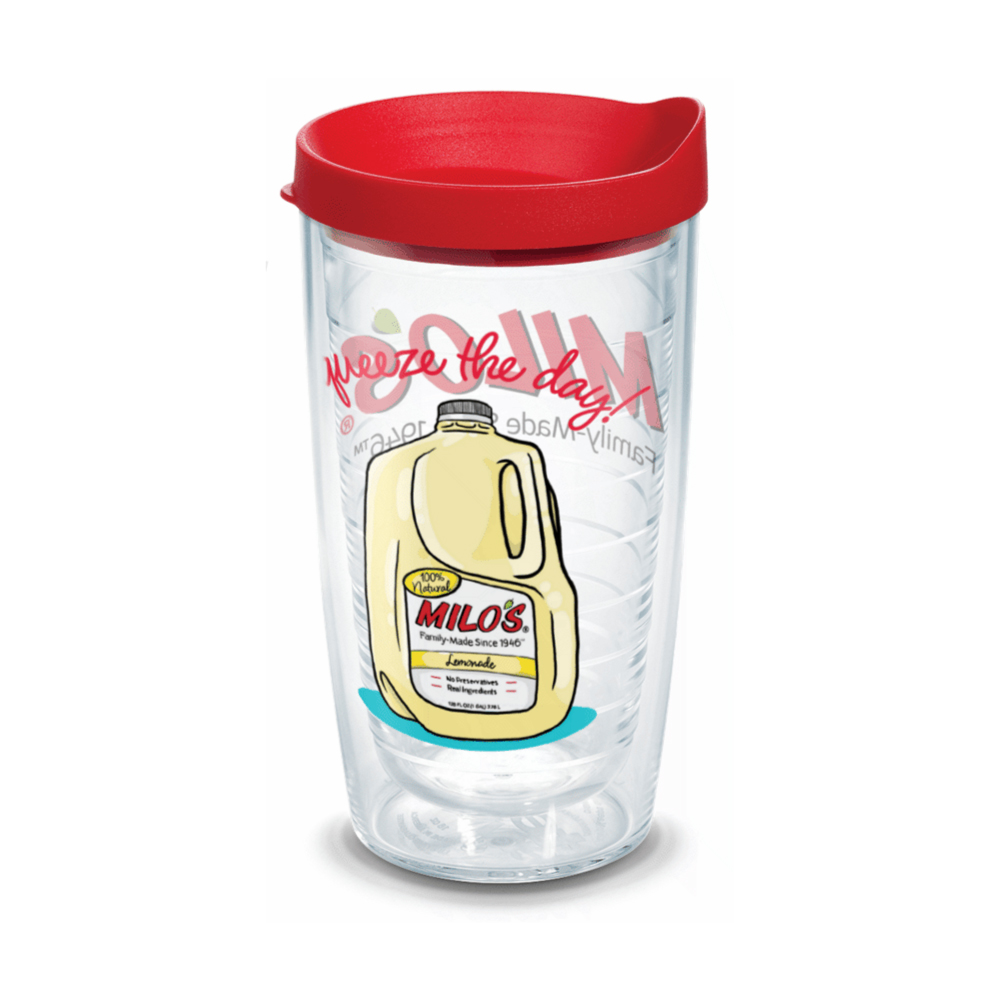 sku: MIL11001837-LMilo's Lemonade Tervis Tumbler. 16oz Tervis Tumbler. The original Made in the USA tumbler. Tervis is the original double wall insulated tumbler that your customers ask for by name since 1946. Manufactured from clear TRITAN for clarity, impact strength and durability. Features a lifetime guarantee. Double wall insulation reduces condensation. BPA Free. Microwave & dishwasher safe